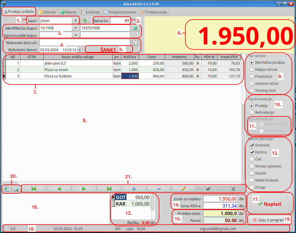 Objašnjenje po brojevima: